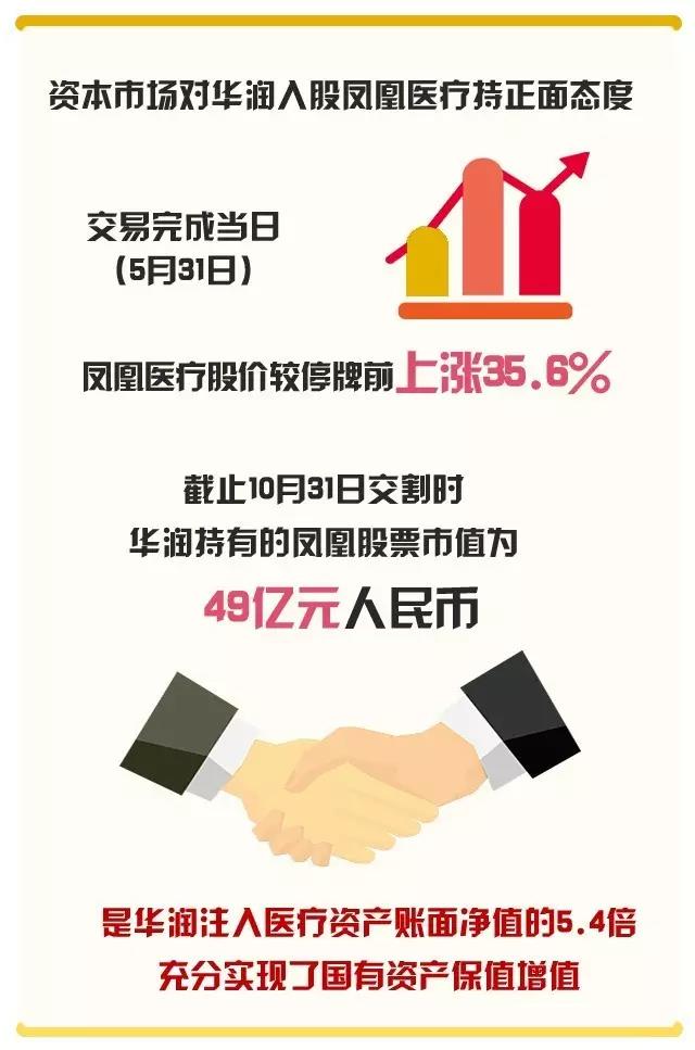 混合所有制的目標是啥?是促進國有企業(yè)轉換經營機制,放大國有資本功能。華潤控股整合鳳凰醫(yī)療、中信醫(yī)療,增強國有資本對上市公司的主導力度,以11億國有資本(華潤累計投入的資本)撬動約88億元的社會資本,擴大了上市公司的產業(yè)規(guī)模和全國布局。
